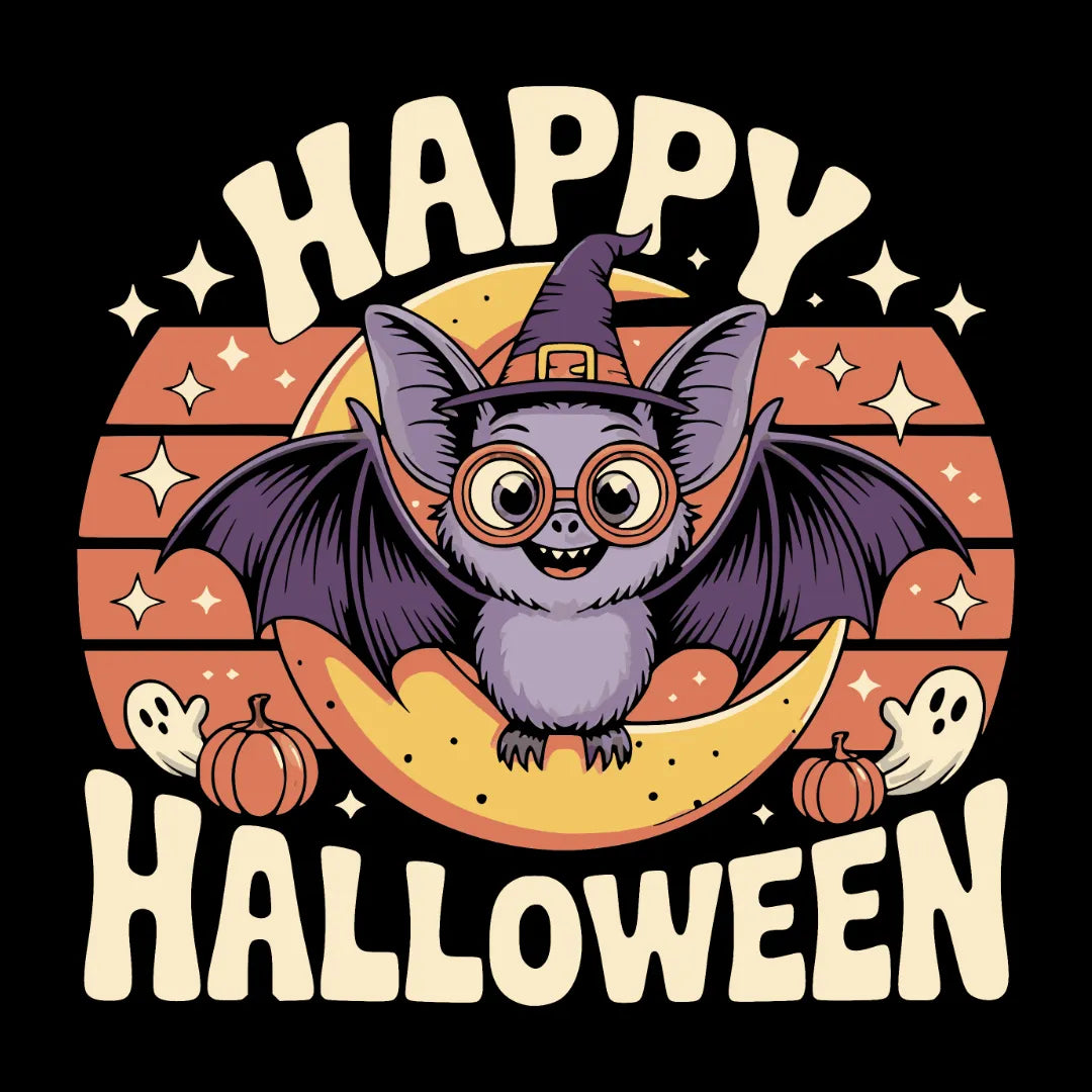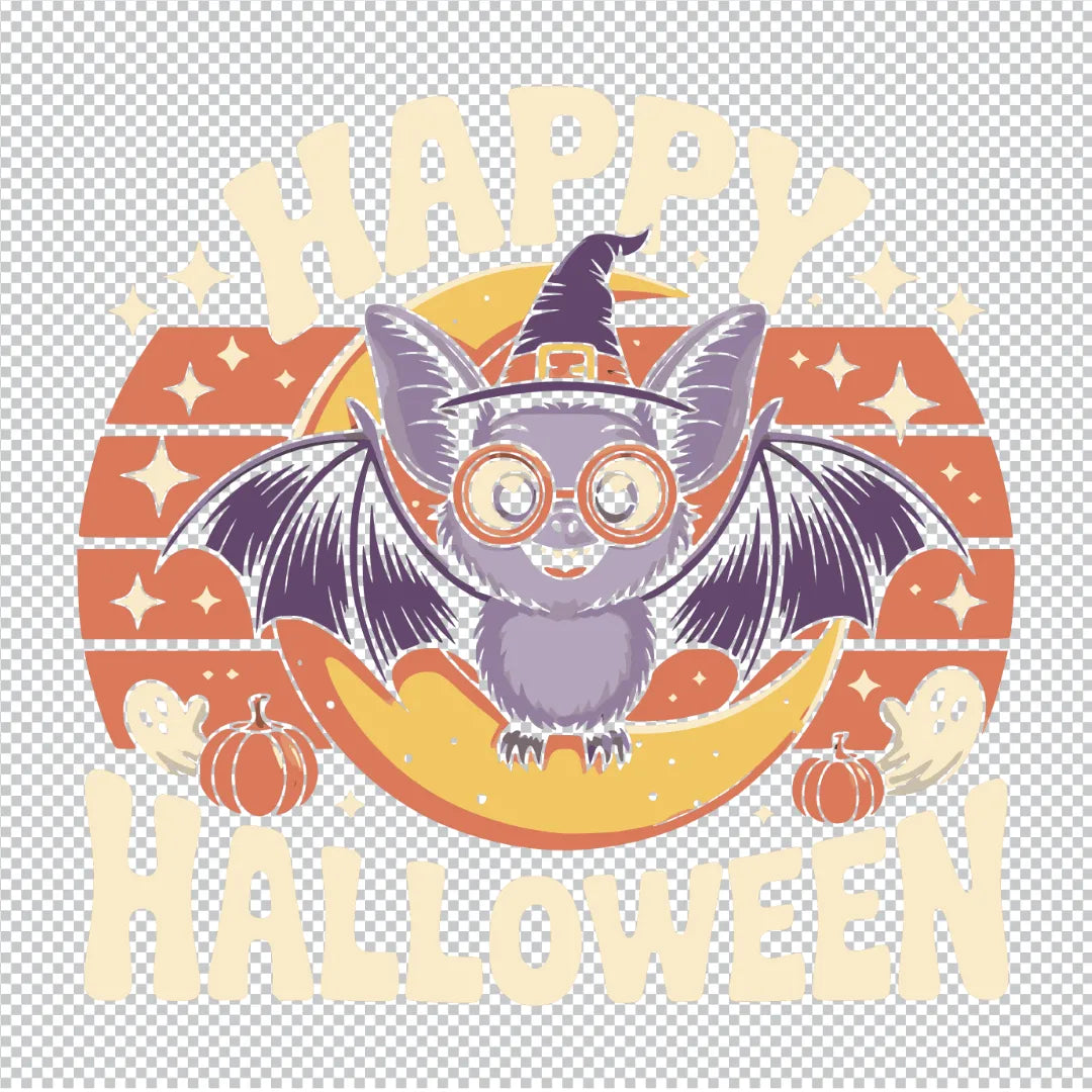 Diese magische Bügelfolie (DTF: Direct-to-Film) entführt Kinder in eine glitzernde Halloween-Nacht! Das Motiv zeigt eine niedliche Fledermaus mit lächelndem Gesicht und sanft ausgebreiteten Flügeln auf einm Mond – umrahmt vom fröhlichen Spruch "Happy Halloween". Ohne gruselige Details für extra strahlende Kinderaugen!