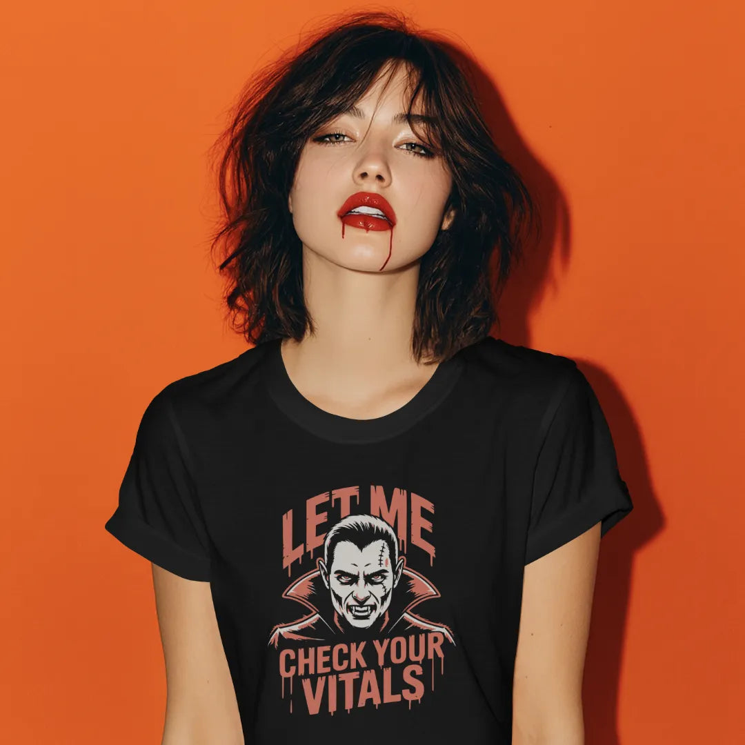 Unser vampirischer Arzt ist bereit für die Untersuchung! Diese einzigartige DTF-Folie (Direct-to-Film) zeigt einen eleganten Vampir mit ernster Miene und einem unverkennbaren Funkeln in den Augen. Der doppeldeutige Spruch "Let me check your vitals" verleiht dem Design eine gruselig-witzige Note und macht es zum absoluten Eyecatcher für alle, die medizinischen Humor mit Horror-Charme lieben.