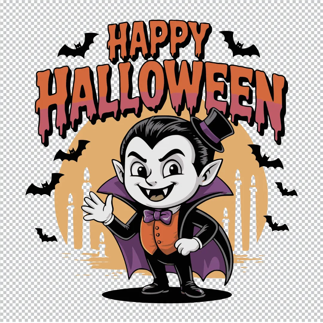 Diese herzallerliebste Bügelflie (DTF: Direct-to-Film) verwandelt Grusel in Gemütlichkeit! Das Motiv zeigt einen freundlichen Vampir mit einem verschmitzten Lächeln, umrahmt von warm leuchtenden Kerzen und sanft flatternden Fledermäusen – dazu der fröhliche Spruch "Happy Halloween". Ohne scharfe Konturen oder furchterregende Details, dafür mit extra viel Charme für kleine Nachtschwärmer!