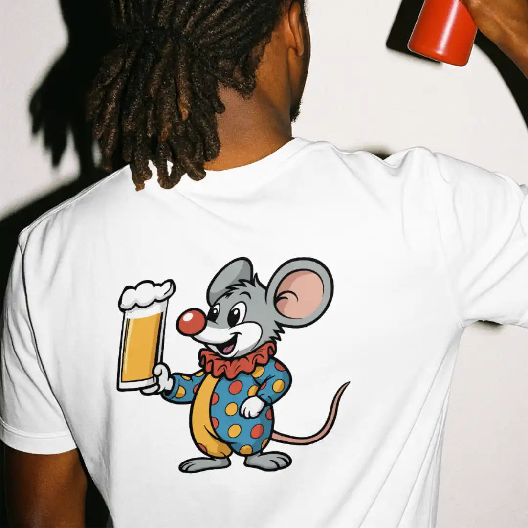 Bringen Sie Karnevalsstimmung auf Textilien! Unser Bügelbild-Bogen mit der beliebten Karnevalsmaus ist perfekt, um T-Shirts, Taschen, Hoodies oder Kostüme im Handumdrehen zu verzieren und zu personalisieren. Die niedliche Maus im bunten Clownskostüm, die ein „Kölsch“ in der Hand hält, ist das ideale Motiv für Jecke, Narren und Karnevalsfans.