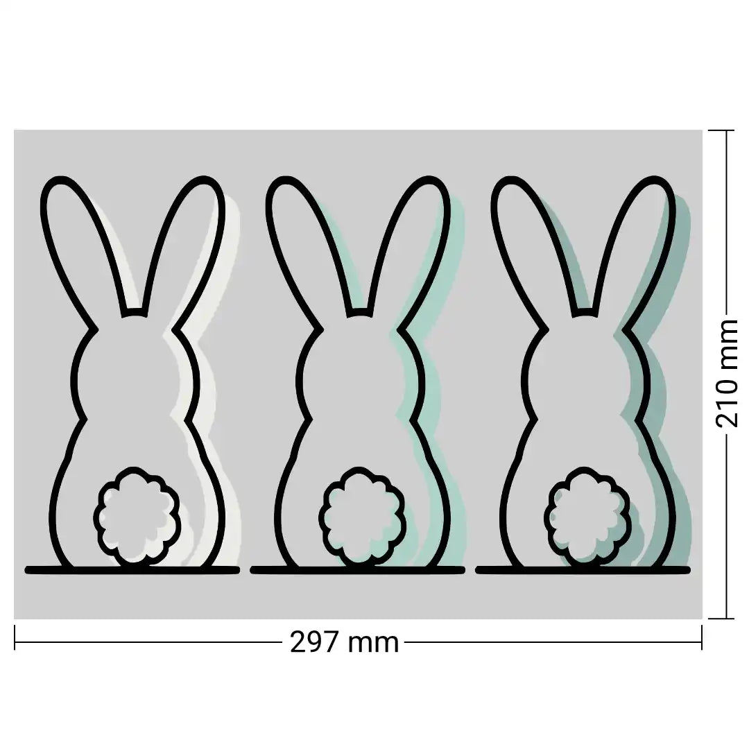 - Drei Hasen als Rücken-Silhouette – minimalistisch, modern und zeitlos.